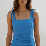 Ez a retro fürdőruha a tökéletes választás mindazoknak, akik a retro eleganciát és a strukturált dizájnt egyaránt keresik. A széles pántok biztonságos tartást biztosítanak és vintage eleganciát kölcsönöznek, míg az oldalsó sima panelek karcsúsító hatást adnak és modern eleganciát teremtenek. A négyzetes dekoltázs kifinomult vonalat teremt, az egyrészes dizájn időtlen eleganciát ad, így a fürdőruha sokoldalúan viselhető.
