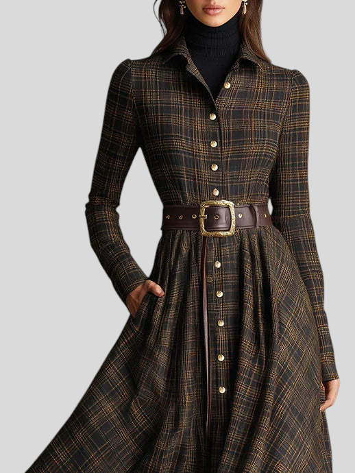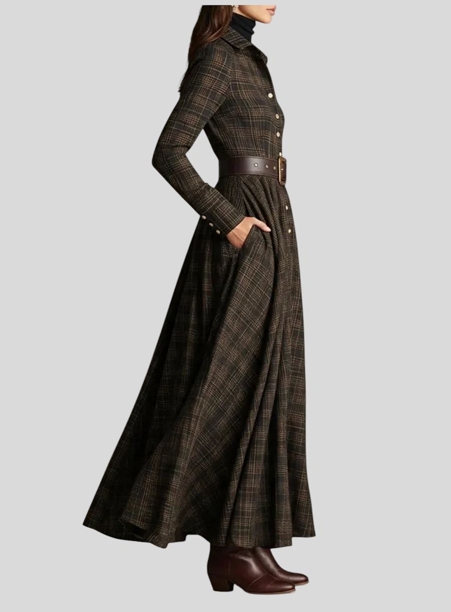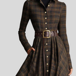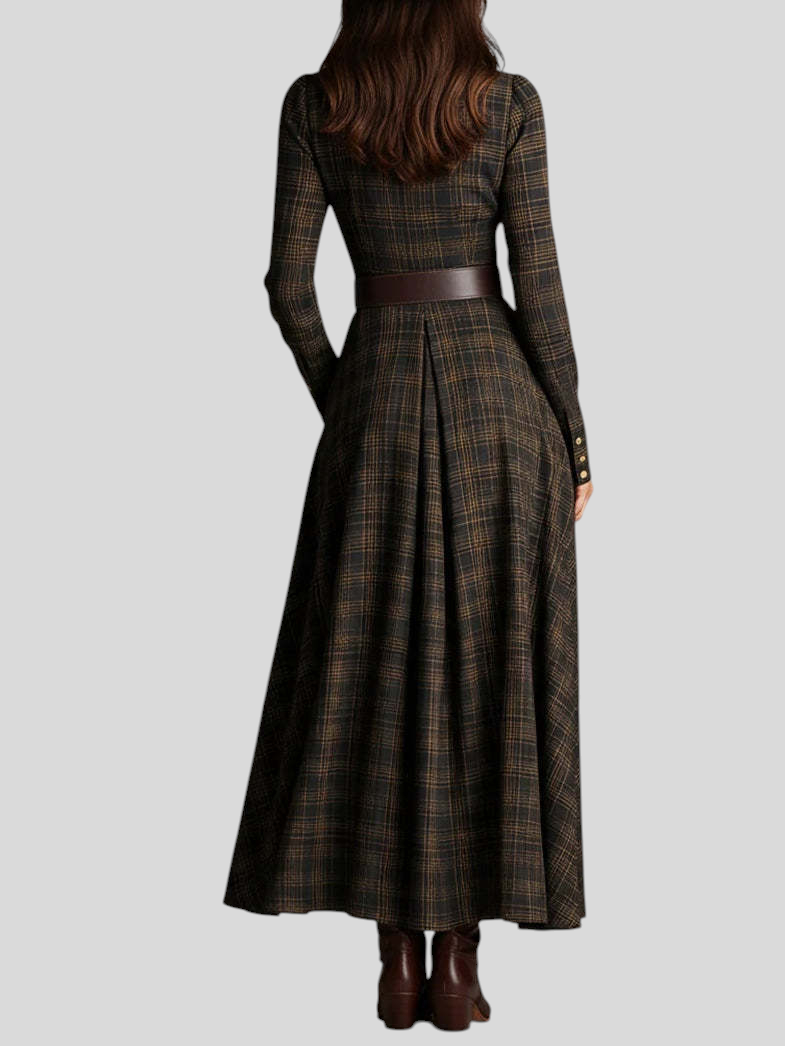 Kornélia™ - Kockás kabát ruha övvel
