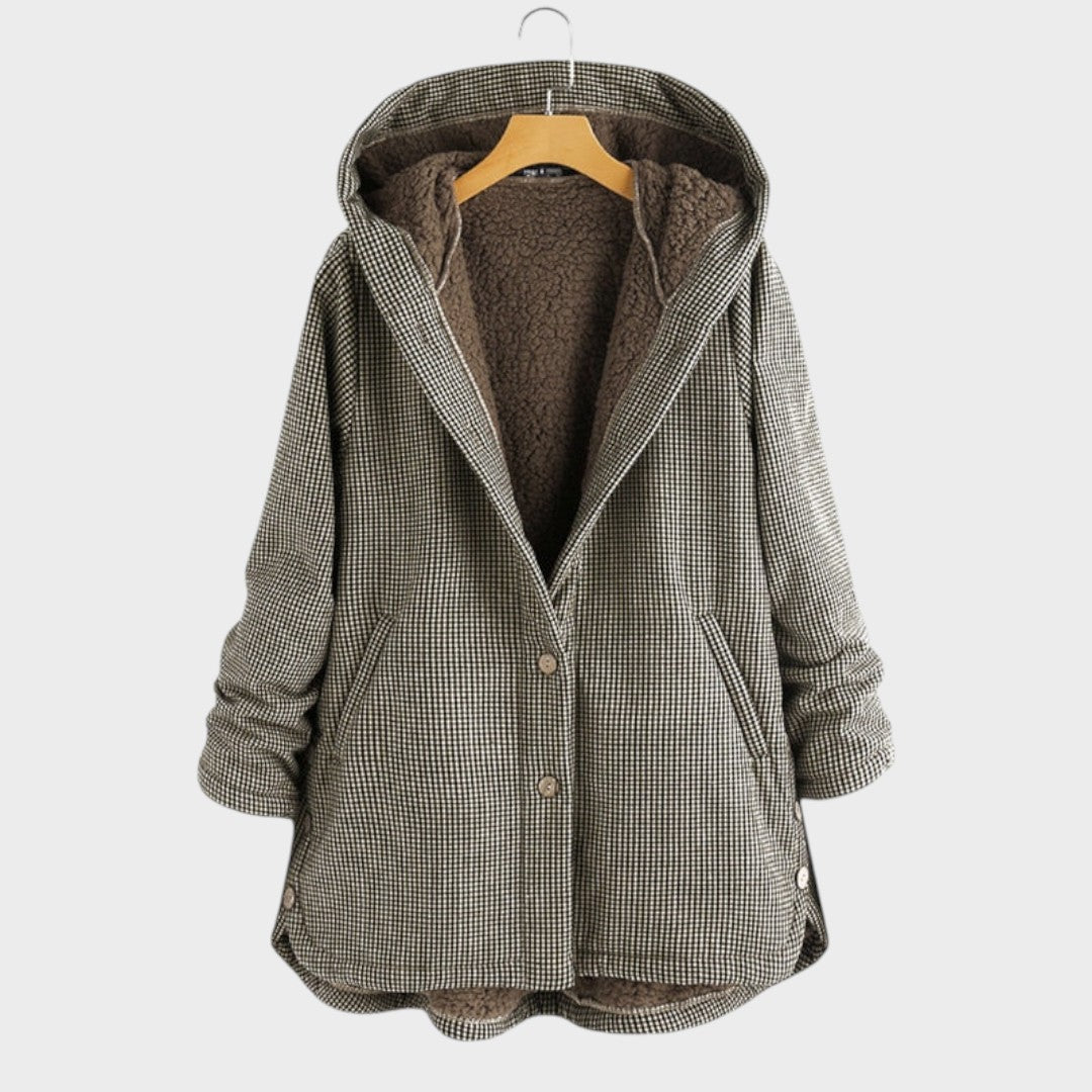 Etelka™ - Kockás szőrmés bélésű kabát kapucnival