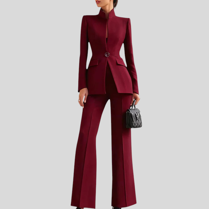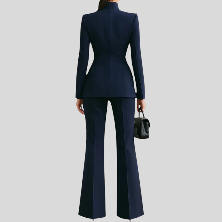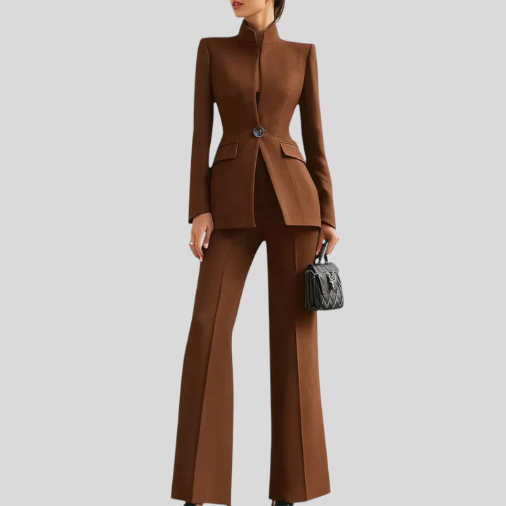 Helga™ - Magas gallérú blézer és flare nadrág szett