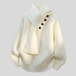 Ez a levehető galléros pulóver a tökéletes választás mindazoknak, akik az egyedi részleteket és a sokoldalú viselhetőséget egyaránt keresik. A nagy, levehető gallér statement részletet teremt és lehetővé teszi a megjelenés személyre szabását – viselhető gallérral elegáns megjelenéshez vagy gallér nélkül minimalista stílushoz. A gombos gallér kifinomult részletet ad és vintage eleganciát kölcsönöz, míg a puha, texturált kötött anyag kellemes melegséget nyújt. A laza szabás kényelmes mozgást ad és könnyed sziluettet teremt, így a pulóver sokoldalúan viselhető. Akár farmerrel casual megjelenéshez, akár elegáns nadrággal kifinomult stílushoz párosítod, ez a pulóver mindig egyedi választás. A levehető gallér funkció nélkülözhetetlen statement darabot teremt minden ruhatárban.
