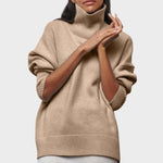 Ez a magas gallér oversized pulóver a tökéletes választás mindazoknak, akik a maximális kényelmet és a kortárs minimalista stílust egyaránt keresik. A magas, garbós gallér kellemes melegséget nyújt és elegáns vonalat ad, míg a puha, vastag kötött anyag felhőszerű kényelmet biztosít. Az oversized, hosszított szabás szabad mozgást ad és modern, könnyed sziluettet teremt. A bordázott részletek a galléron, ujjakon és alsó szegélyen strukturált megjelenést kölcsönöznek, így a pulóver sokoldalúan viselhető. Akár leggings-szel casual megjelenéshez, akár elegáns nadrággal kifinomult stílushoz párosítod, ez a pulóver mindig kényelmes és stílusos választás. A minimalista dizájn és a laza szabás nélkülözhetetlen alapdarabbá teszi minden ruhatárban.