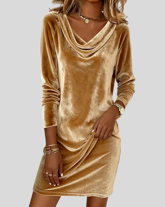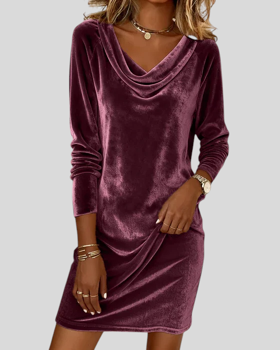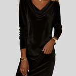 Bársony ruha drapírozott nyakkal – elegáns kényelem!