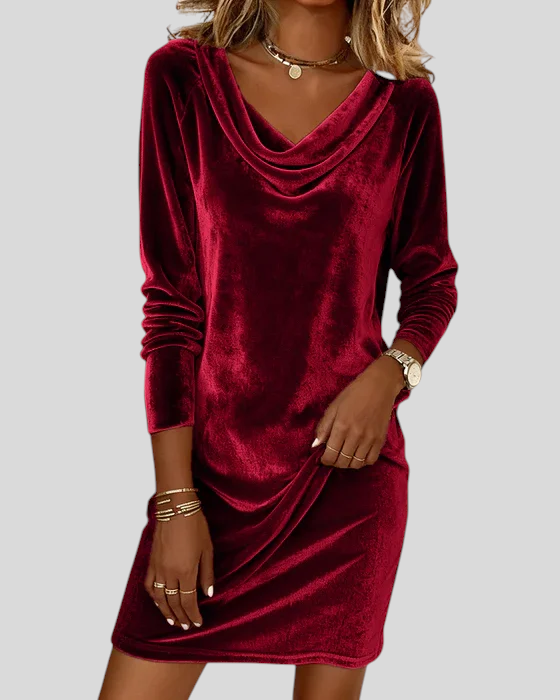 Rebeka™ - Bársony ruha drapírozott nyakkal