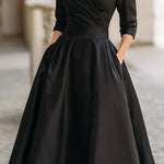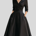 Ez a vintage stílusú blézer ruha a tökéletes választás mindazoknak, akik a retro eleganciát és a nőies vonalakat egyaránt keresik. A blézer stílusú felső rész átlapolós kivágással és széles gallérral rendelkezik, amely klasszikus eleganciát teremt. A markáns derékból induló bő, harang alakú szoknya 50-es évek stílusú sziluettet ad és nőies vonalat kölcsönöz. A 3/4-es ujjak kifinomult befejezést biztosítanak, a zsebek pedig praktikus részletet nyújtanak. A strukturált szabás időtlen eleganciát ad, így a ruha sokoldalúan viselhető. Akár magassarkúval elegáns megjelenéshez, akár vintage kiegészítőkkel retro stílushoz párosítod, ez a ruha mindig statement választás.