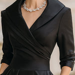 • Vintage blézer stílusú felső rész: Átlapolós kivágás és széles gallér, amely klasszikus 50-es évek eleganciát ad.