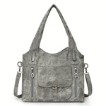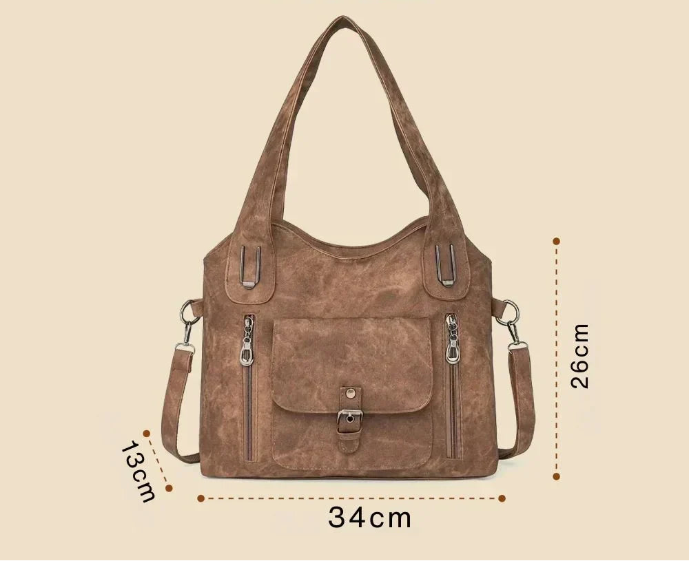 Orsolya™ - Nagy mosott bőr táska zsebekkel