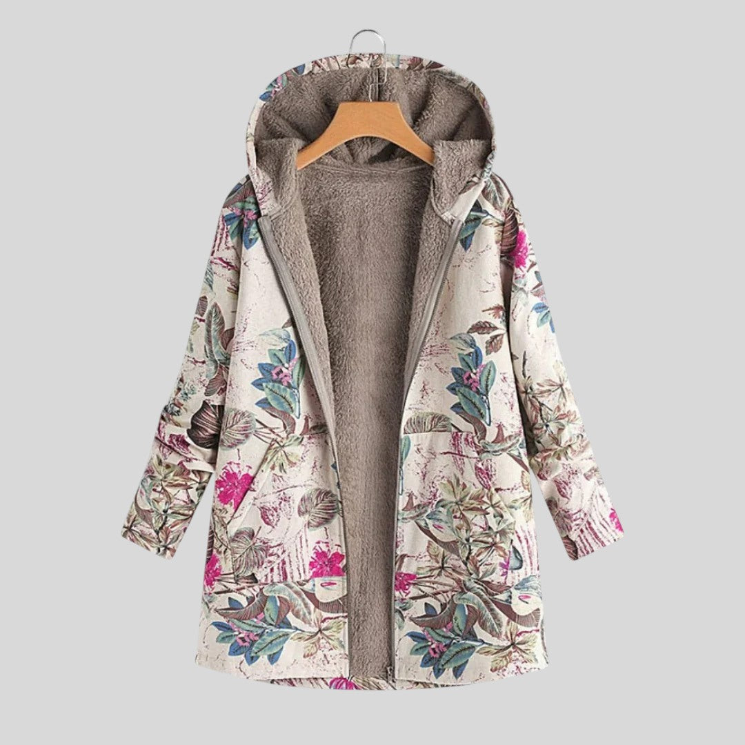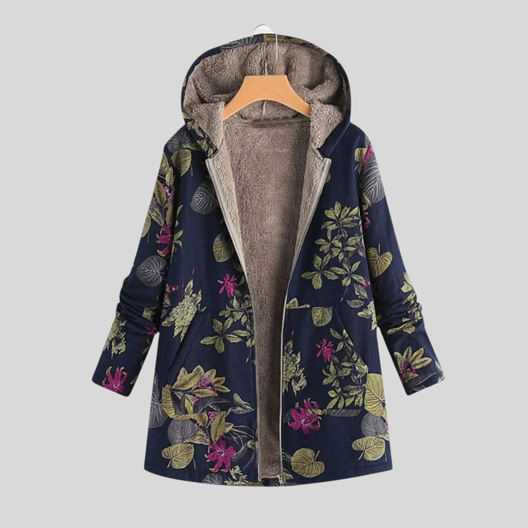 Öltözz fel melegen és időtlen bájjal ebben a kabátban. A kényelmet és a kifinomultságot értékelők számára tervezett kabát gyönyörű virágmintát hoz a mindennapi ruhatáradba. Akár a hűvös őszi levegőn sétálsz, akár egy hűvös estére öltözöl, ez a kabát kényelmes viseletet biztosít, miközben laza stílust kölcsönöz.