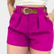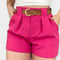 Ez az öves magas derekú short a tökéletes választás mindazoknak, akik az elegáns stílust és a statement részleteket egyaránt keresik. A széles öv arany csattal statement részletet teremt, míg a magas derék előnyös vonalat biztosít. Az elülső ráncok kifinomult eleganciát adnak, így a short könnyen párosítható.