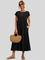Ez a bő szabású ruha zsebekkel a tökéletes választás mindazoknak, akik a minimalista stílust és a maximális kényelmet egyaránt keresik. A bő szabás könnyed mozgást teremt, míg a praktikus zsebek funkcionalitást adnak. A midi hosszúság időtlen eleganciát biztosít, így a ruha könnyen párosítható.
