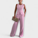 Beáta™ - Gombos mellény és wide leg nadrág szett